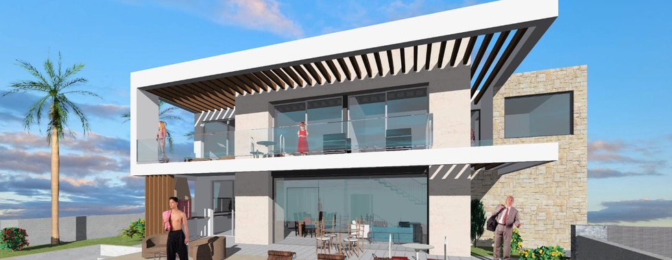 Illustration des von einem Architekten vollständig durchgeplanten und daher genehmigungsreifen Bebauungsprojekts für das Grundstück in Estreito da Calheta: Villa mit 3 Schlafzimmern und Pool.